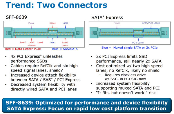 Was wann und wie bei M.2 auf den Markt kommt, kann man schwer vorhersagen. Aber es ist auch ein 2.5" Format für SATA Exporess SSDs geben. M.2 ist ja nur der Name für den Sockel, der kann auch ganz andere Signale enthalten wie z.B. USB, dann sind die Kerben an anderer Stelle. Die Kerben kodieren letztlich, welche Signale der M.2 Sockel bzw. die M.2 Karte hat und wenn man eine M.2 SSD mit zwei Kerben sieht, wie die M.2 Version der Crucial m500, dann ist das eine die nur das SATA Signal verwendet, die also im Prinzip keinen Performancevorteil gegenüber einer mSATA oder 2.5" Version bieten wird.Seb89 schrieb:als die M.2 SSDs die ja auch kaum im Consumer Markt ankommen.