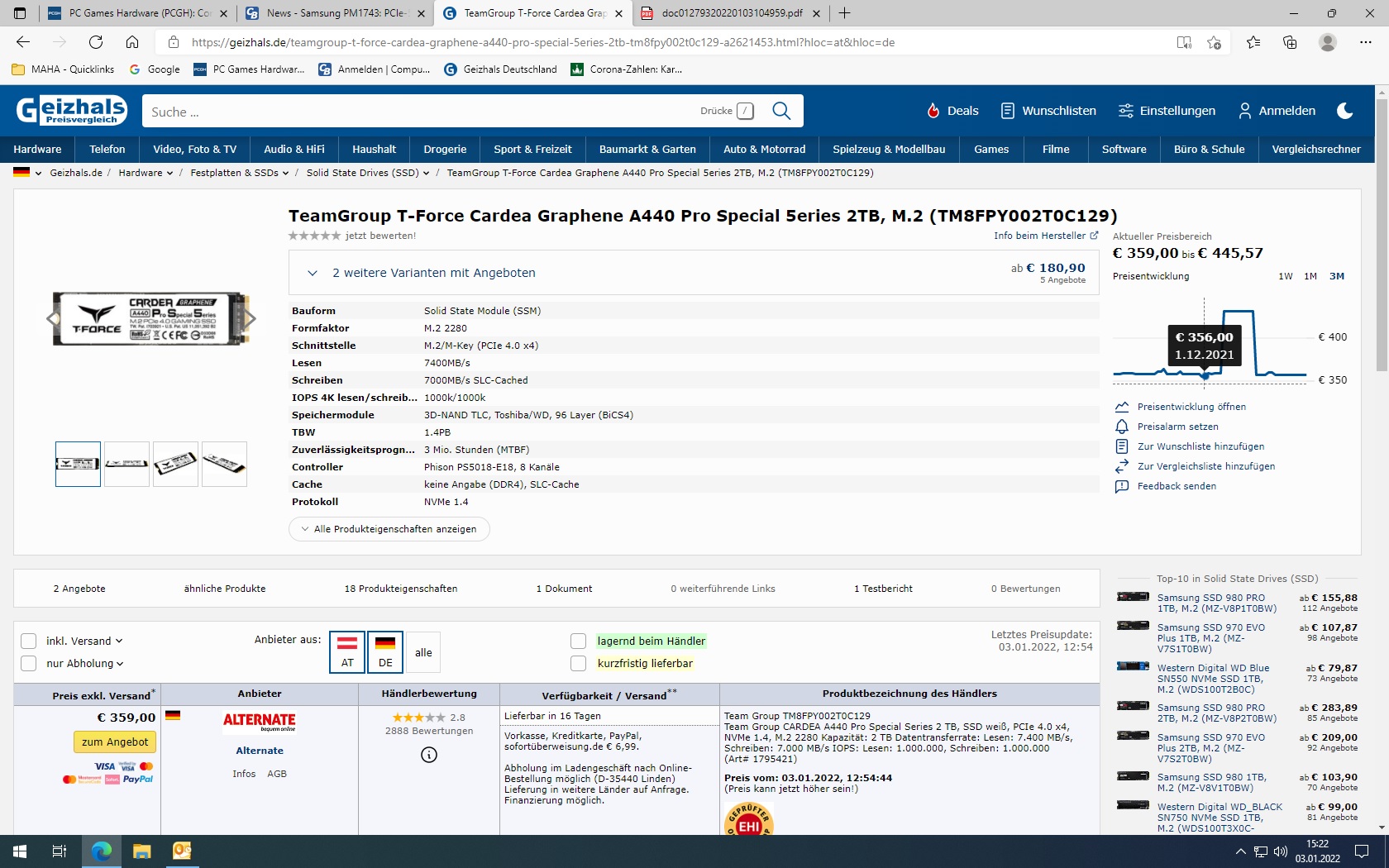 Was ich mir jetzt noch Wünsche das die Preise endlich richtig Nachgeben. Klar sind die Preise für SSDs in den letzten Jahren schon stark gefallen. Aber sobald eine SSD mehr als 1 GB groß ist und dann noch PCIE 4 bietet wird es sehr schnell sehr teuer im Verhältnis zu PCIE 3.