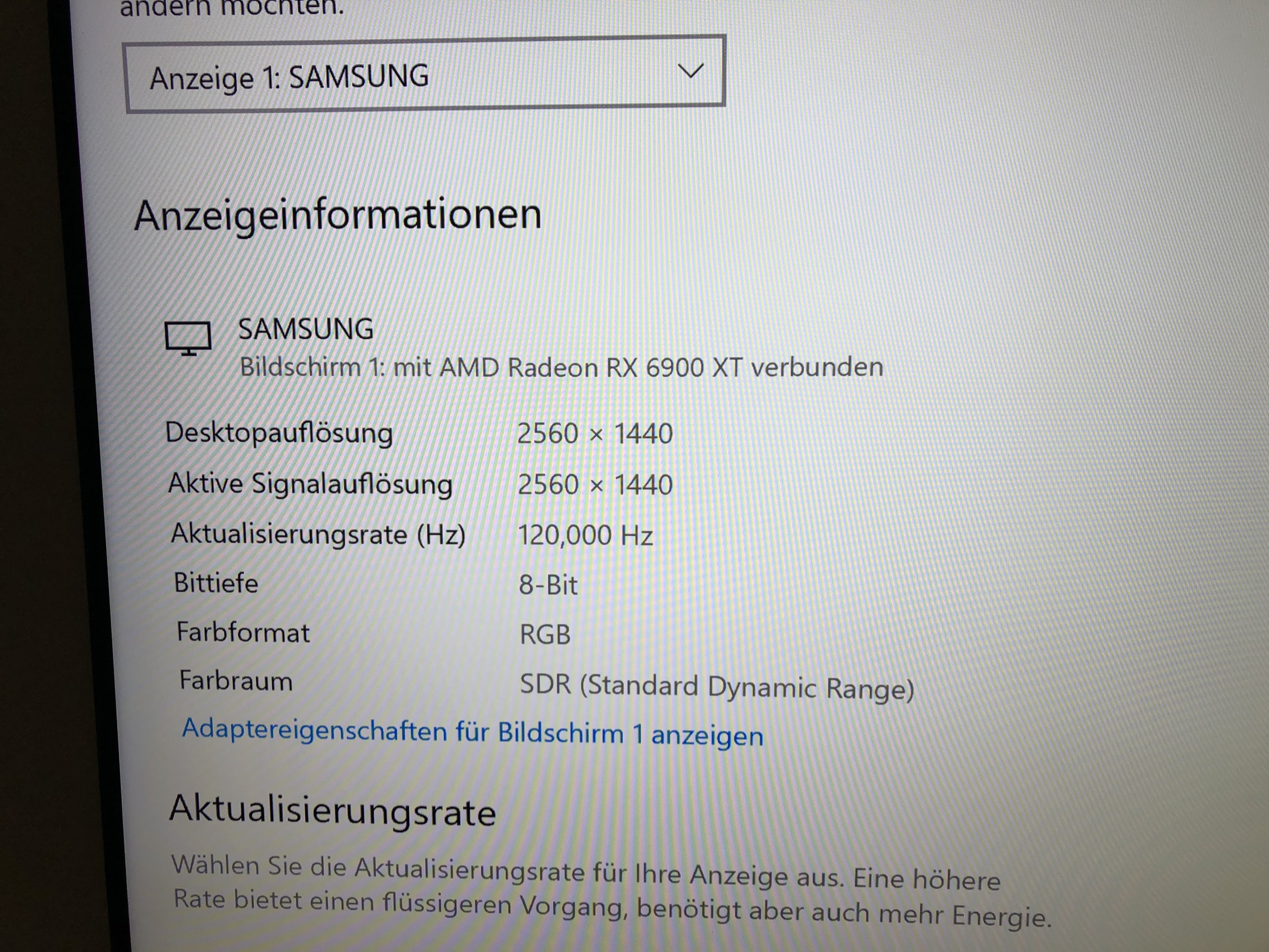 Oder ich 120 hz einstelle springt er auf 8 Bit