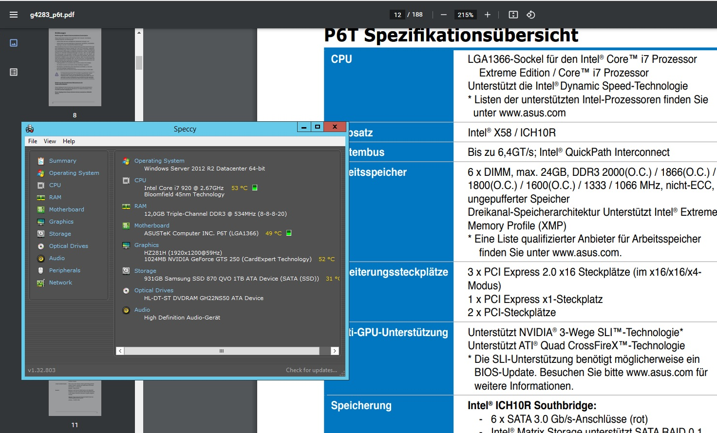 Der PC ist zusammengebastelt aus gebrauchten Komponeneten (Intel i7 920 2,6 Ghz, 12 GB RAM , Geforce GT 610 )