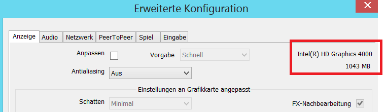 Beim Konfigurieren der Grafik im Spiel selbst, wird mir immer die Intel HD angezeigt.