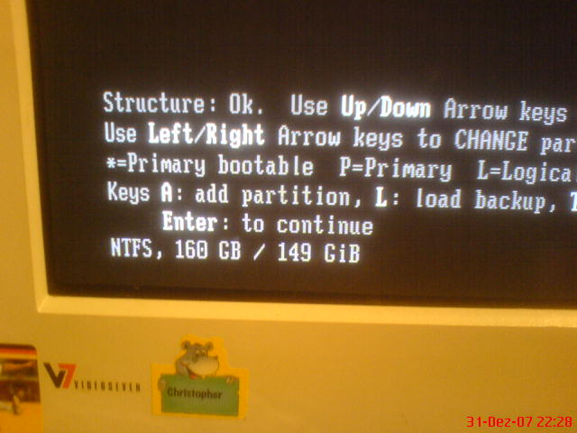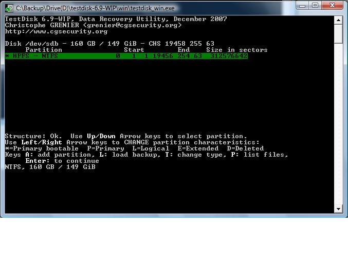 * Partition Size [8 bytes]: 149 Gb (312581808 sec)