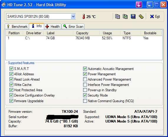 Meine Samsung Spinpoint SP0812N läuft nur auf UDMA 5 statt 6 laut HD Tune oder Systemsteuerung. Laut Hersteller ist sie UDMA 6. http://www.samsung.com/Products/Har...es/HardDiskDrive_SpinPointPSeries_SP0812N.htm