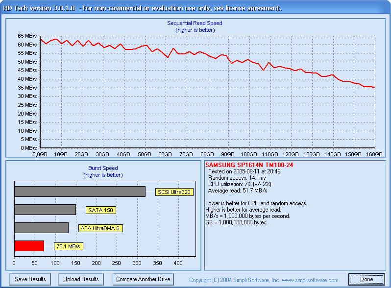 Habe zweimal die Samsung SP1614C verbaut aber KEIN Raid. Angschlossen an SATA 3/4 und der Controller ist der "NVIDIA nForce3 250 Serial ATA Controller" Merkwürdig ist auch der einbruch in einen Sektor. Habe mit einen Freund gesprochen der auch meint das irgendwas nicht in Ordnung sein kann. Ich bin mit meinen Latein absolut am ende und wollte Euch fragen ob jemand eine Lösung hat?