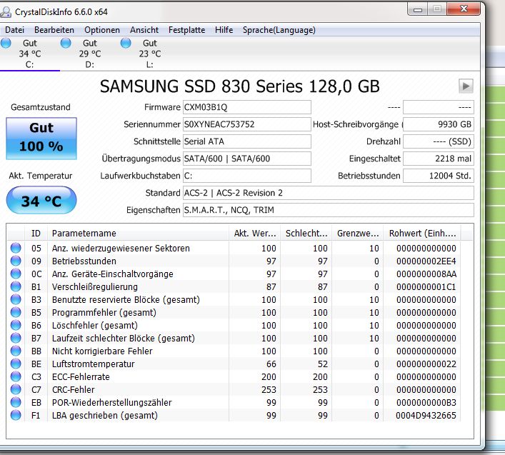 ich habe schon seit geraumer Zeit ein Problem mit meiner SSD. Diese hat zum Teil nur noch Transferraten von 8-15 MB pro Sekunde, dabei ist es egal, ob ich von einer Festplatte/USB3.0 Flashdrive auf die SSD, oder von der SSD weg kopiere. Auch ist der Startvorgang sehr lang und es fühlt sich mehr danach an, als ob ich eine HDD hätte.
