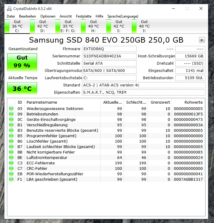 Da die Festplatte noch Garantie hat und erst 15.29TB Total Bytes Written auf der Uhr stehen hat, bin ich mir nicht sicher ob dieses sein darf und ob ich sie reklamieren sollte bzw. ob es genauere Testprogramme gibt die mehr Aussagekräftig sind als Samsung Magician?