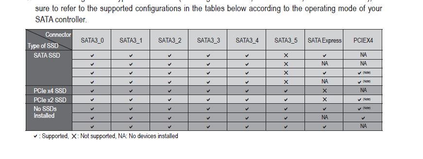 Im Handbuch vom Mainboard steht jedenfalls folgendes: The PCIEX4 slot shares bandwidth with the SATA Express slot and the M.2 connector. When the SATA Express slot or the M.2 connector is populated, the PCIEX4 slot will operate at up to x1 mode.