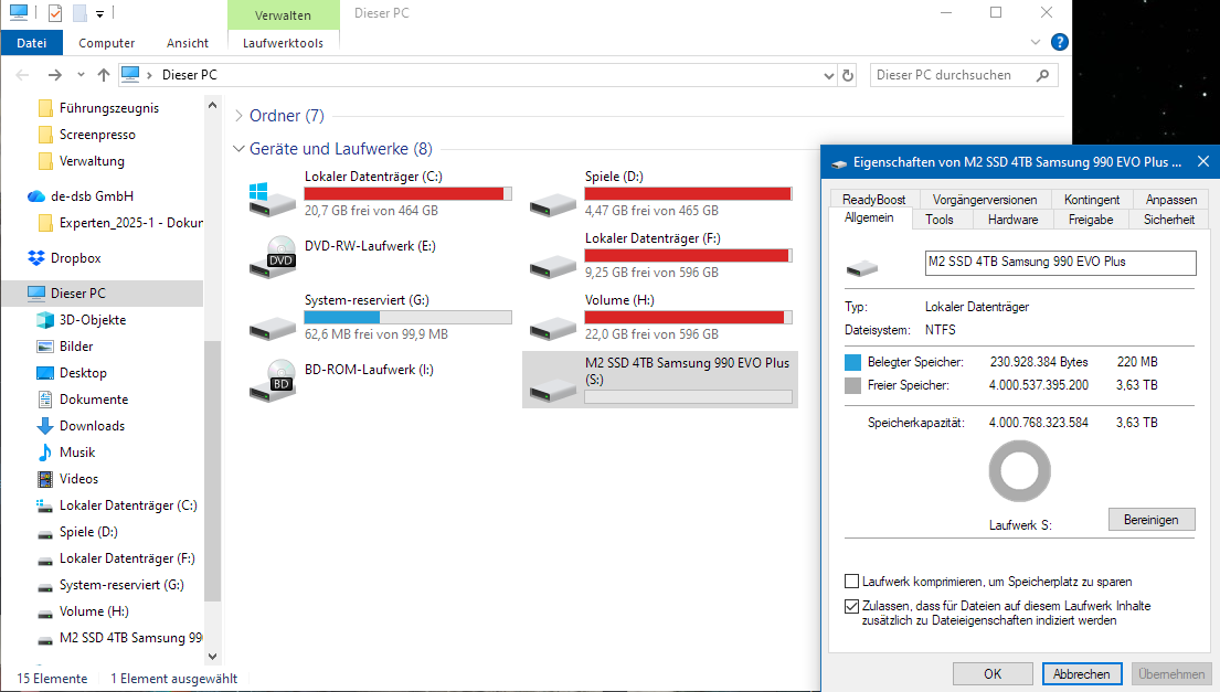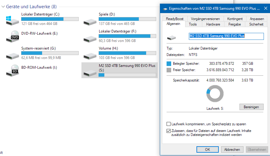 ich wollte mir eine SSD gönnen und habe mir die Samsung 990 Pro 4TB gekauft. Nun habe ich sie im PC verbaut und sie wird auch im BIOS und im Gerätemanager sowie vom Samsung Magician erkannt, aber nicht im Explorer/Arbeitsplatz angezeigt.