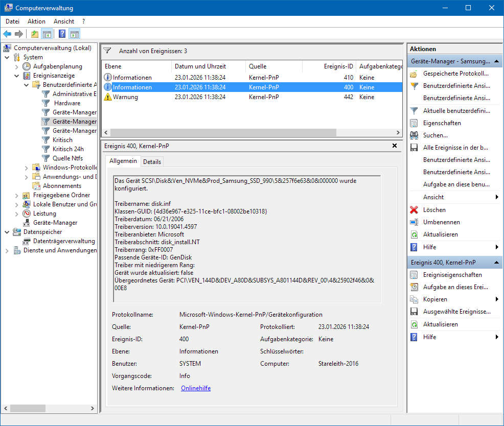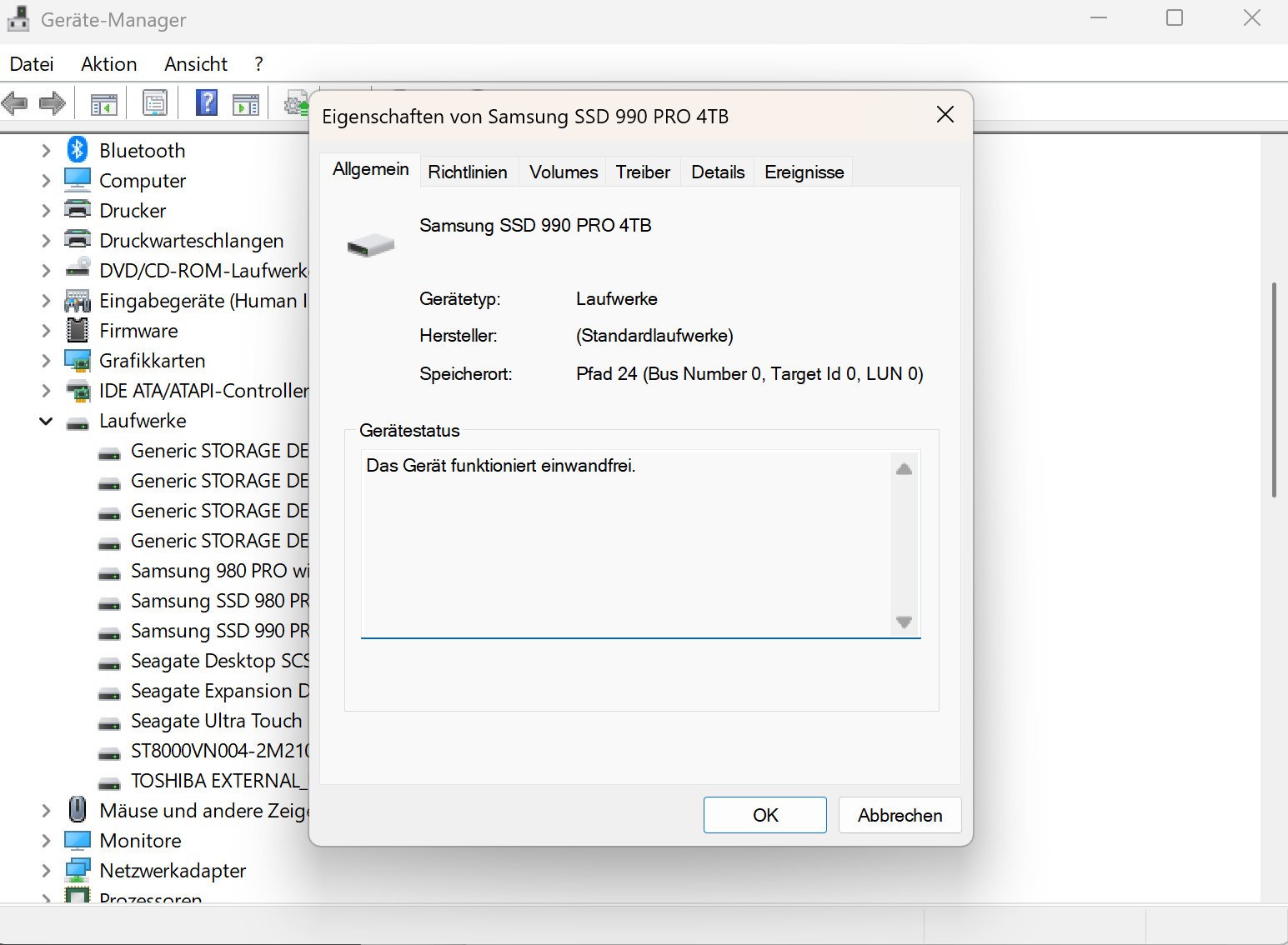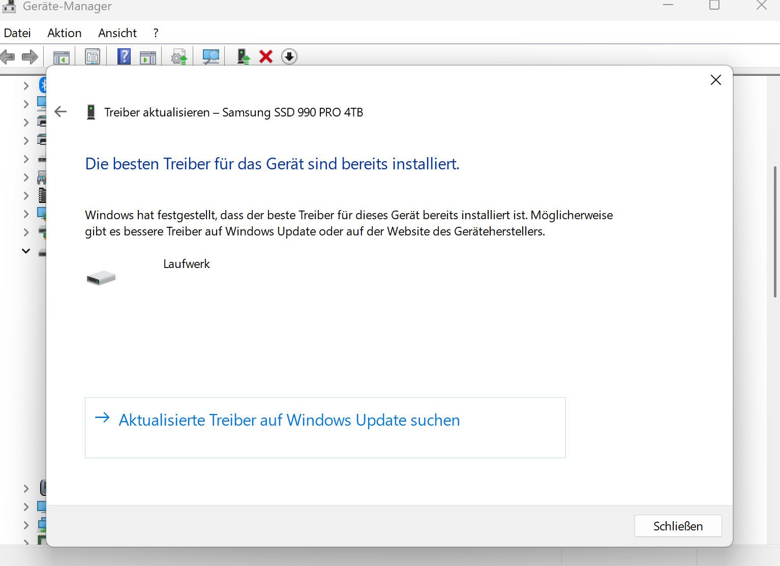 Das Gerät SCSI\Disk&Ven_NVMe&Prod_Samsung_SSD_990\5&20eec198&0&000000 wurde konfiguriert.