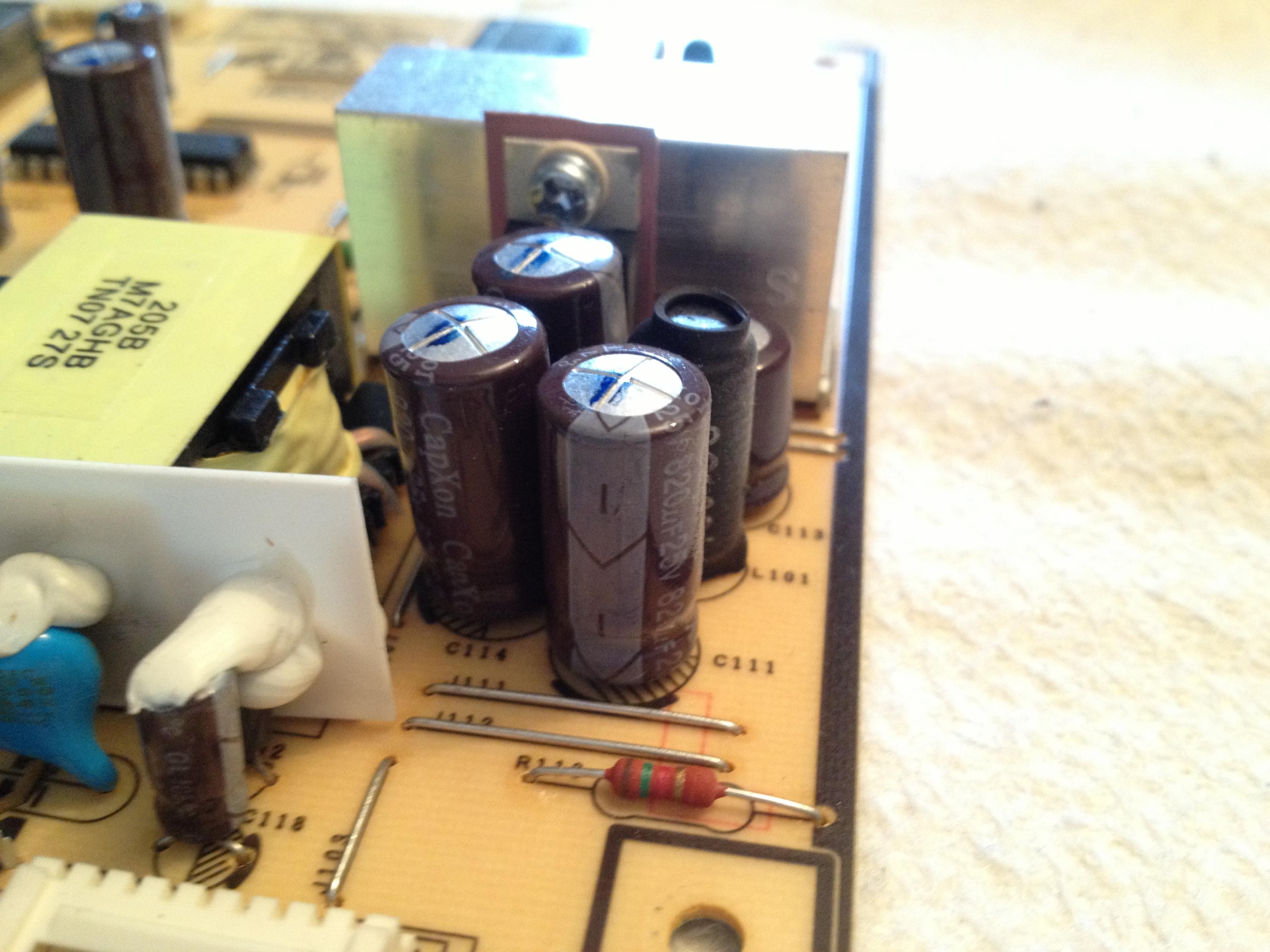 Nachdem ich mich jetzt endlich mal durchgerungen hab meinen Samsung aufzuschrauben hab ich natürlich auch die gewölbten Elkos entdeckt. (Eigentlich ne Schweinerei das eiskalt kalkuliert diese Schrottteile eingebaut wurden.) Jedenfalls hab ich mal bei reichelt nachgeschaut und wollt mal wissen ob die Elkos dort was taugen. Vorallem wollt ich mal fragen ob ich die 1000mf Elkos mit Sicherheit reinbekomme.