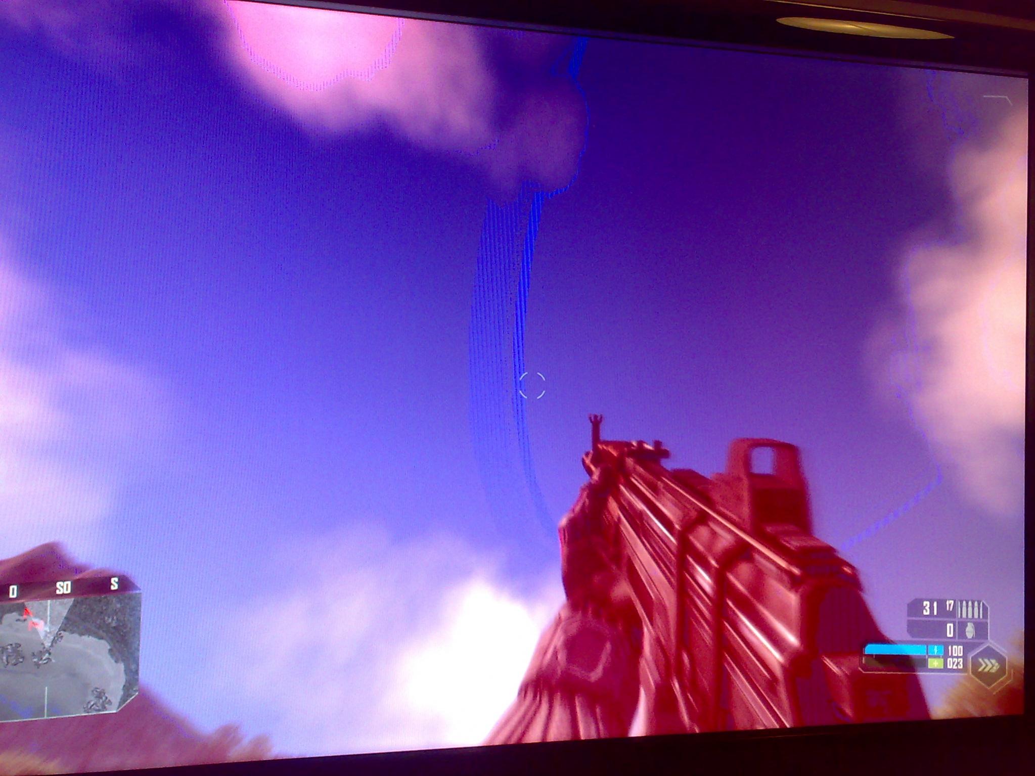 Bei Crysis sieht man es am besten, und das die Waffe rot ist, ist normal wurde gerade von nem Koreaner angeschossen...