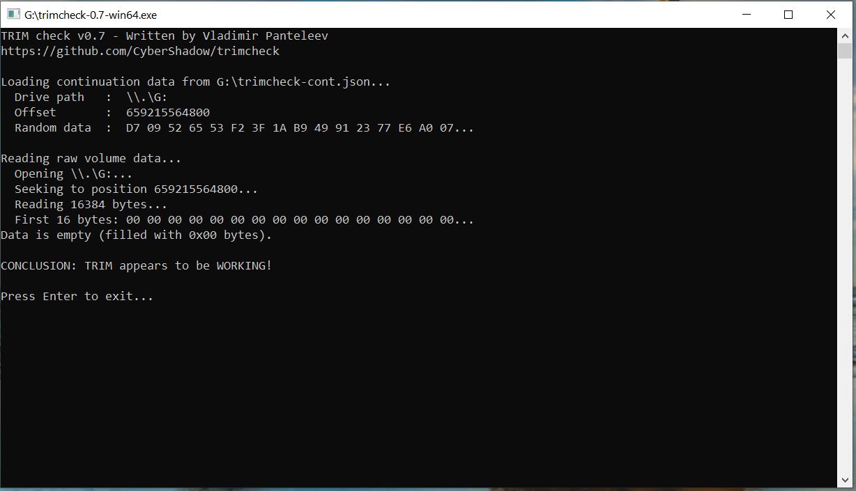 User Holt gab in dem anderen Thread dann noch den Tipp die Temperatur zu testen und mit TrimCheck zu überprüfen, ob der Trim-Befehl ausgeführt wird.