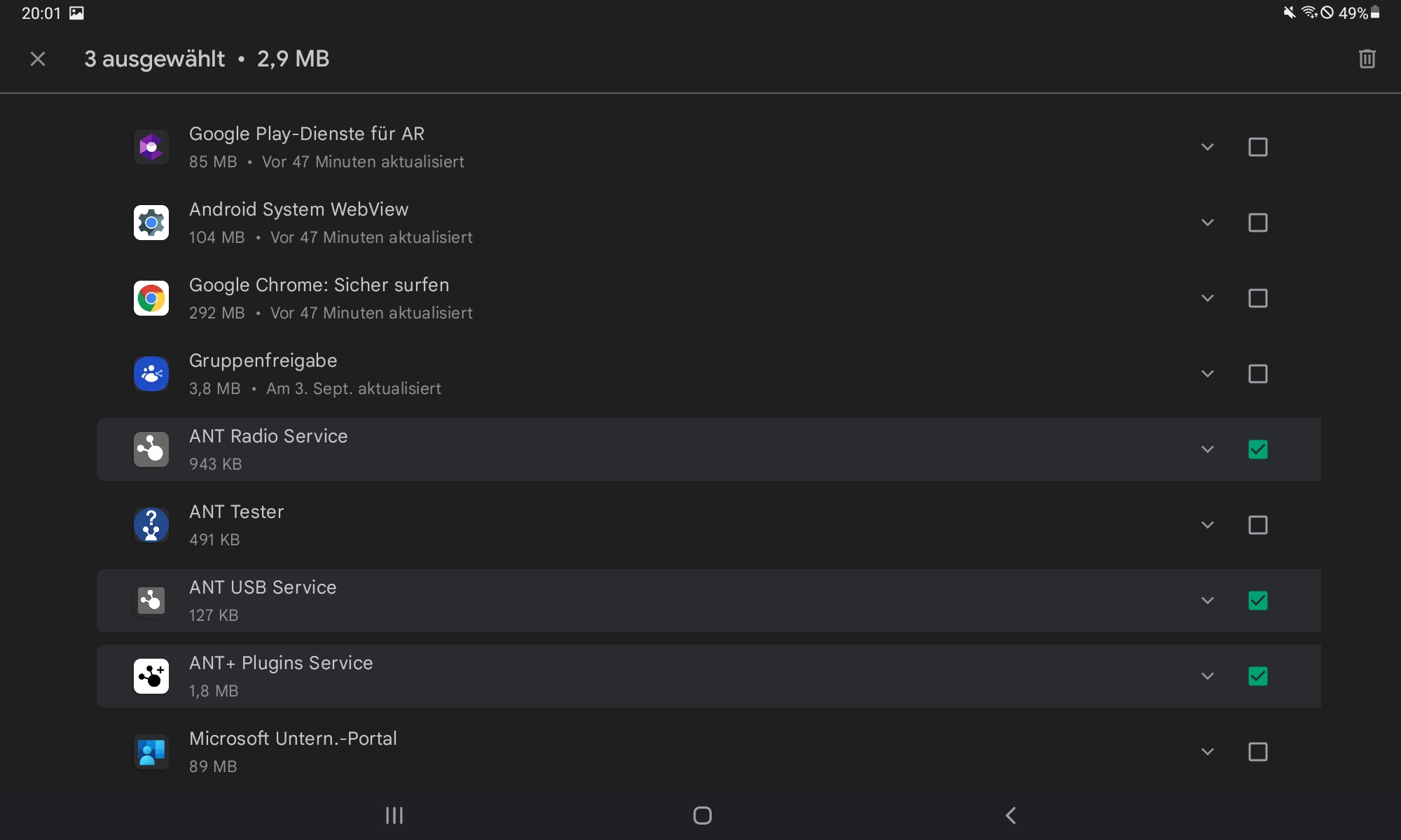 Ich nutze ein Samsung Tab A7 und habe via OTG einen Ant+ Dongle angeschlossen. Anschließend Ant+ Service und Ant+ für USB aus dem Playstore installiert.