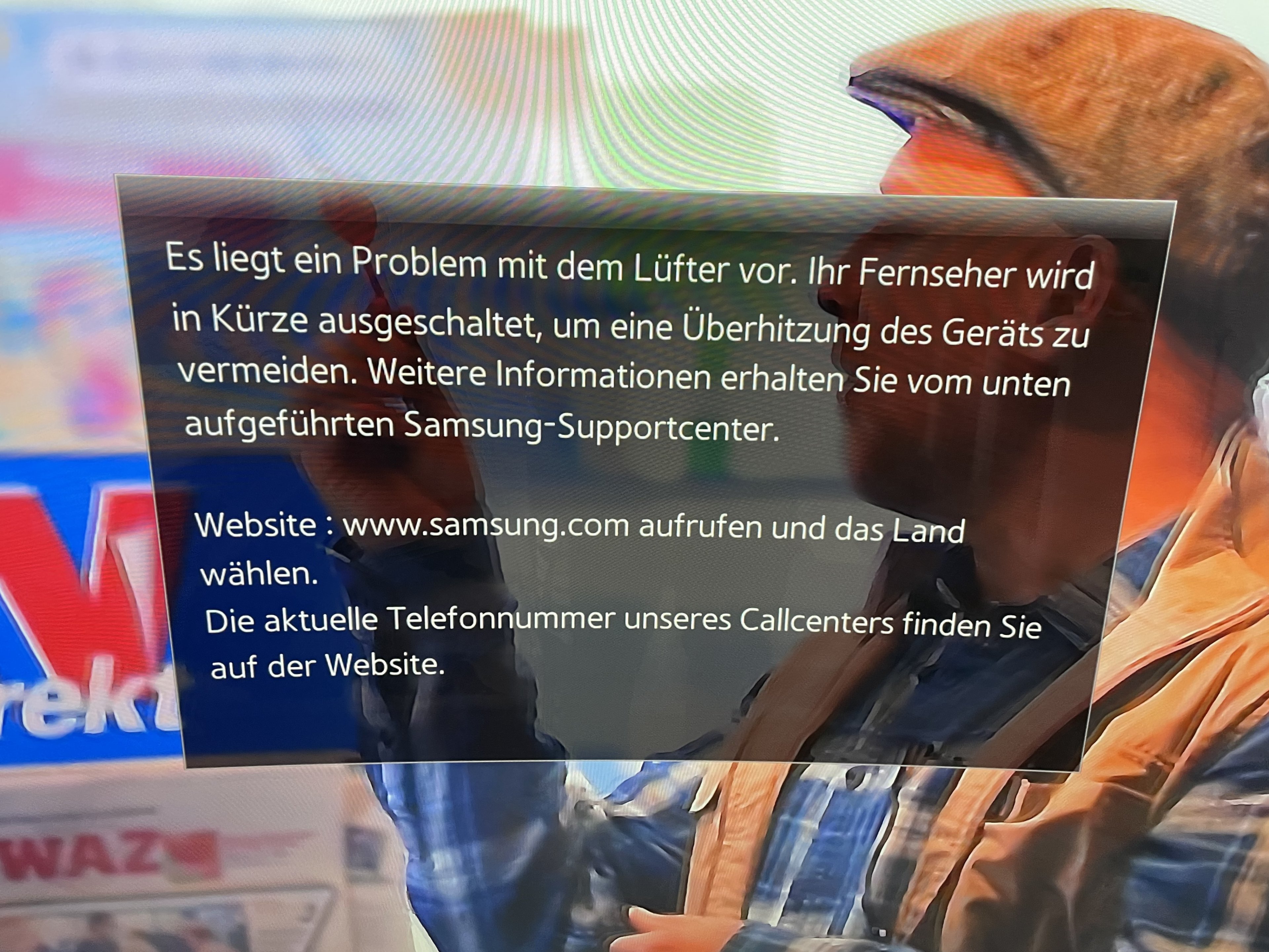 "Es wurde ein Problem mit dem Lüfter entdeckt. Das Gerät wird zum Schutz vor Überhitzung abgeschalten. Wenden