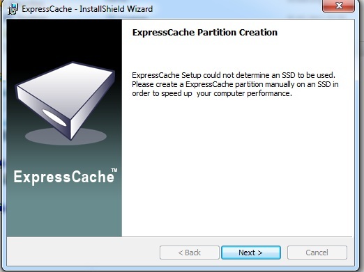 Dann ist klar warum es nicht geht. Der Expresscache wird normalerweise als eigener Datenträger angezeigt. Der Fehlt bei dir komplett. Hast du den Expresscache in ein Windowsfremdes Dateisystem gebracht?