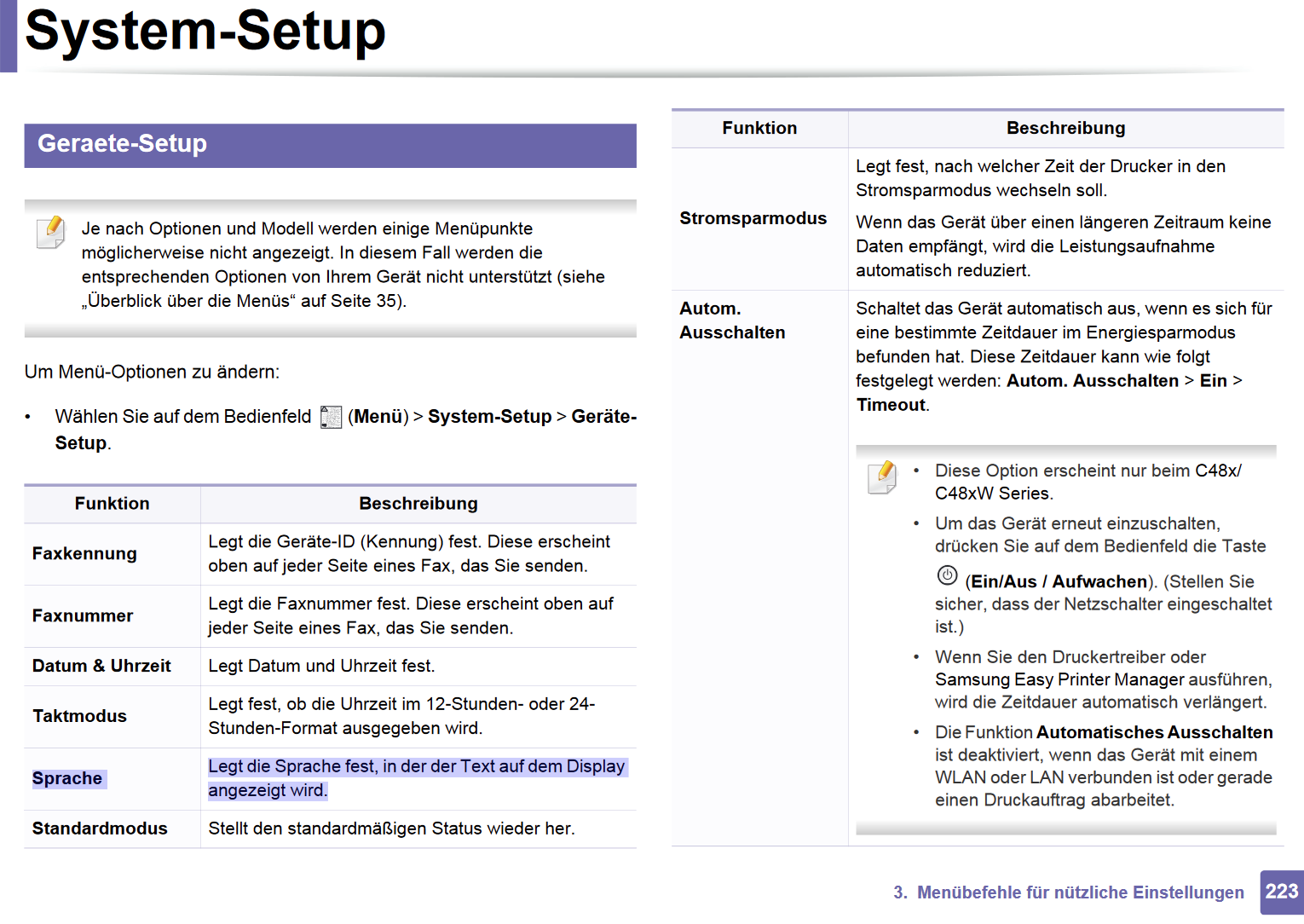 Samsung Xpress C480FW Display auf deutsch einstellen