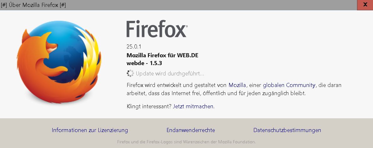 und was steht in der info vom firefox? vermutlich wieder "Firefox für web.de"