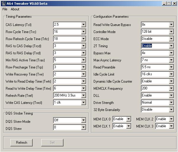 Poste mal einen Screen vom A64-Tweaker, wie der Speicher eingestellt ist.
