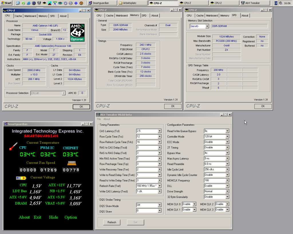 Habe noch nen Venice, den 3200er, bei dem klappt es ohne Probs!! Habe eben Singlechannel getestet. auf 240 bekomme ich nen Bluescreen von ACPI.sys mit non_page und so weiter.... Das macht mich krank. Ich kann nur sagen: never touch a running system... :hammer_alt: