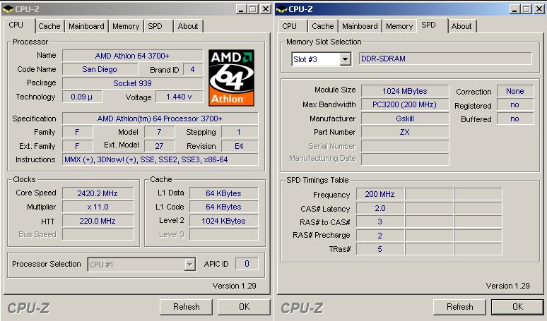 Wenn ich Glück habe, habe ich es morgen hier, sodass ich die CPU und ggf. das NT tauschen kann! Speicher habe ich bereits am Freitag zum 3ten mal getauscht und die Wahrscheinlichkeit, dass er durch ist halte ich für sehr gering. Habe beim Formel 1 Prime durchlaufen lassen, beim FSB von 220. Ohne Probs... Habe CPUZ nochmal angehängt