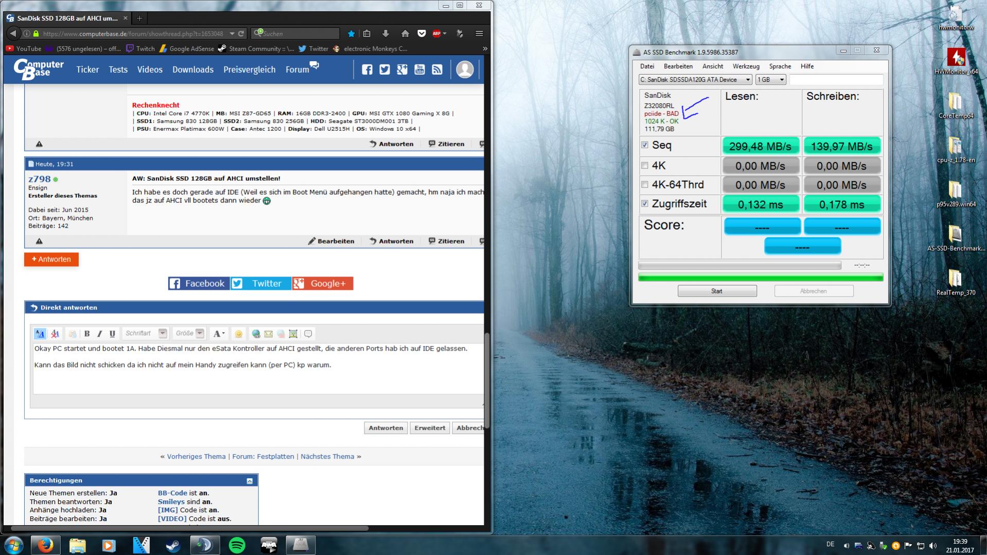 mein System Windows 7 64 Bit habe ich auf meine SanDisk SSD installiert, dann habe ich ein paar Videos angeschaut wie man SSDs optimiert, ich habe den Computerschutz deaktiviert, die Auslagerungsdatei gelöscht und habe im Geräte-Manager nach AHCI gesucht..vergeblich. Im Video erwähnte der Typ das sei kein Problem man solle im Bios suchen, und tatsächlich ich konnte es auf AHCI umstellen. Von nun ab ist mein PC ständig gecrasht und hat sich vorallem bei Spielen aufgehangen (nein es liegt nicht daran das ich den Virtual Ram gelöscht habe bzw. auf "0" gesetzt habe). Nach knapp 2 Wochen ist mein PC im Boot Bildschirm hängen geblieben, Abgesicherter Modus ging... dann kam, ich auf die Idee meine Grafik Treiber zu löschen das habe ich allerdings nicht gemacht da die Treiber nur schwer zu finden sind und ich meine Systemwiederherstellung gelöscht habe (Computer-Schutz deaktiviert) was ich nartürlich auch nicht wieder aktivieren kann. Naja jz habe ich meine SSD auf IDE und alles läuft bisher perfekt. Nun wollte ich fragen ist das so gewollt das ich im Bios auf AHCI stellen kann aber im Geräte Manager nichts von AHCI zu sehen ist? Und verschenkt man viel Leistung wenn man die SSD nicht auf AHCI gestellt hat?