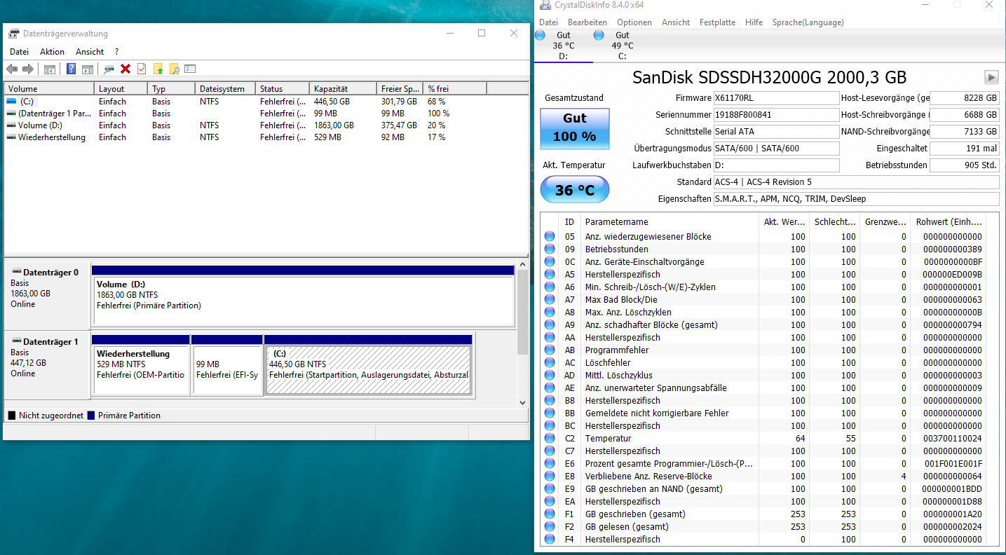 Eine windowsseitige Fehlerüberprüfung war bisher ebenfalls erfolglos und soeben habe ich das SATA-Kabel ausgetauscht und verschiedene Steckplätze getestet um hier einen Defekt auszuschließen.