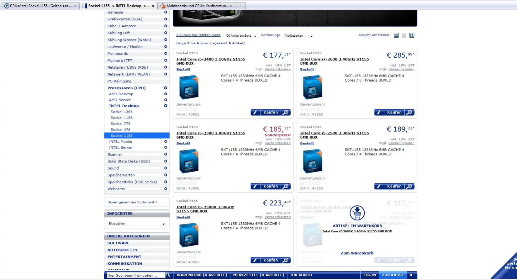 Preise für den 2500K und 2600K analog den $-Preisen.