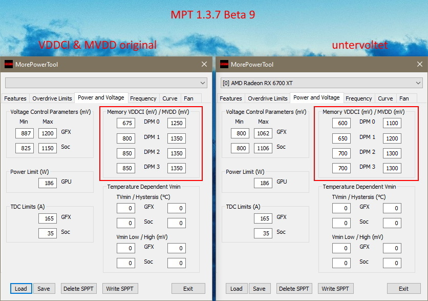 Ich bin heute mit der MPT Beta beschäftigt, die erlaubt noch mehr Einstellungen. Vielleicht kann ich bald berichten ob man auch den Speicher untervolten kann. Bei 6 Modulen müsste sich da verbrauchstechnisch auch ein bisschen was tun.