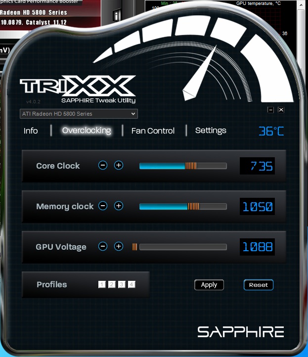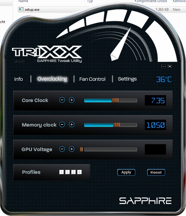 Habe mir den MSI Afterburner und das Sapphire TriXX runtergeladen.