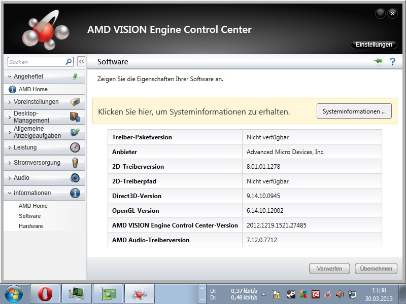 Ich habe AMD Catalyst Komplettpaket 13.1 WHQL für Win7 64-bit geladen aber bei der Installation zeigt der mir nie den Grafiktreiber mit an sondern nur alles andere wie Audio HDMI und den Rotz an.