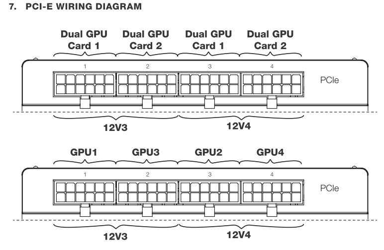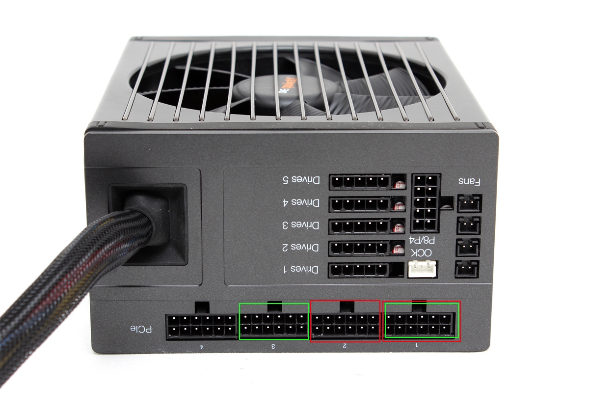 Wenn die Versorgung über 2 Schienen erfolgt ist es dann besser PCie1 und PCie2 (im Bild Rot dargestellt) zu verwenden oder die Versorgung komplett zu trennen, sprich PCie1 und PCie3 (im Bild Grün dargestellt).