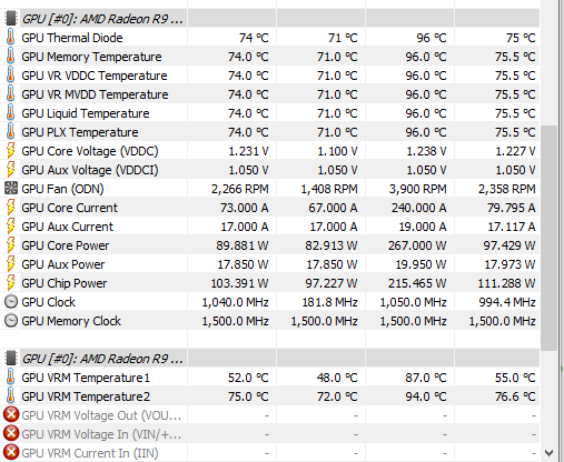 Was ich ebenfalls seltsam finde, dass meine aktuelle Taktrate dauerhaft bei 1040 Mhz und sich im Idle kein bisschen verändert.