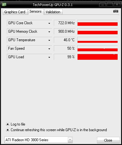 Windows-Betrieb @ 297/828 (GPU/Mem); Vcore = 0,914V (glaub ich - TrayTools Minimum)