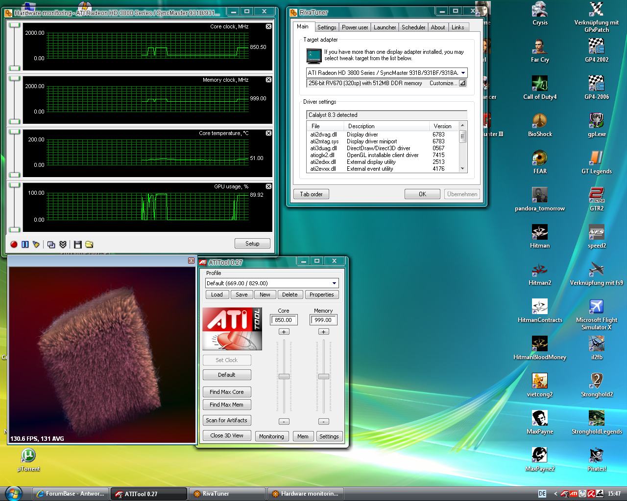 Testen lässt sich das ganze dann wunderbar mit Atitool und dem Hardware Monitor vom Riva Tuner.
