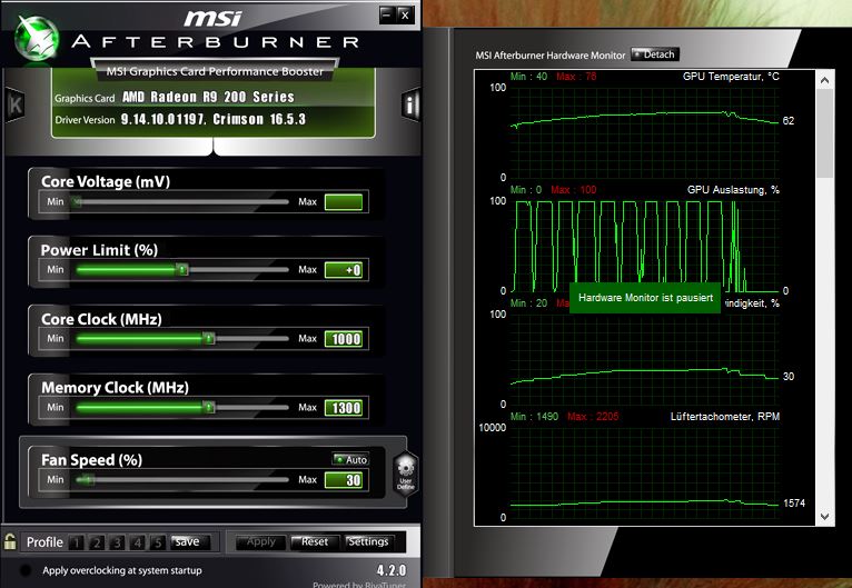 Ich glaube nicht , dass dies mit Wärme zu tun hat, da MSI Afternurner keine hohen Temp.Bereiche (55Grad) anzeigt und die Probleme sehr schnell auftreten.