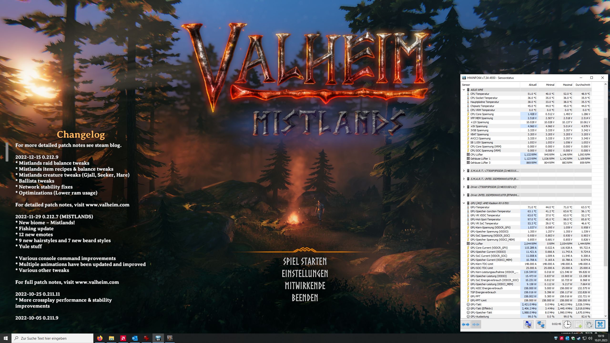 Sobald ich ein Game starte (Valheim in diesem Beispiel), geht die GPU Temperatur auf 70 Grad und der Lüfter dreht mit 2000 rpm und ist somit sehr laut. Dies bereits im Spielmenü.