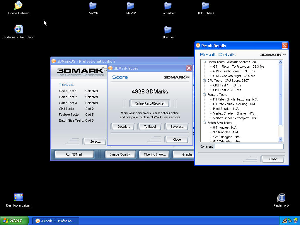 Lass und den LINK sehen von 3D Mark 05 mit einer kompletten auflistung dann ziehe ich auch meine Hut vor dir.