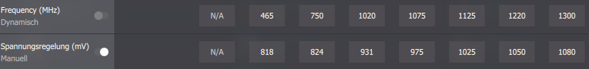ich fahre 1250 Mhz mit 960 mV beim Spielen stabil. Ich würde nochmal probieren, ob da nicht noch was nach unten geht.