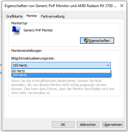 - via Displayport: Dell S2719DGF @ 155 Hz mit Freesync