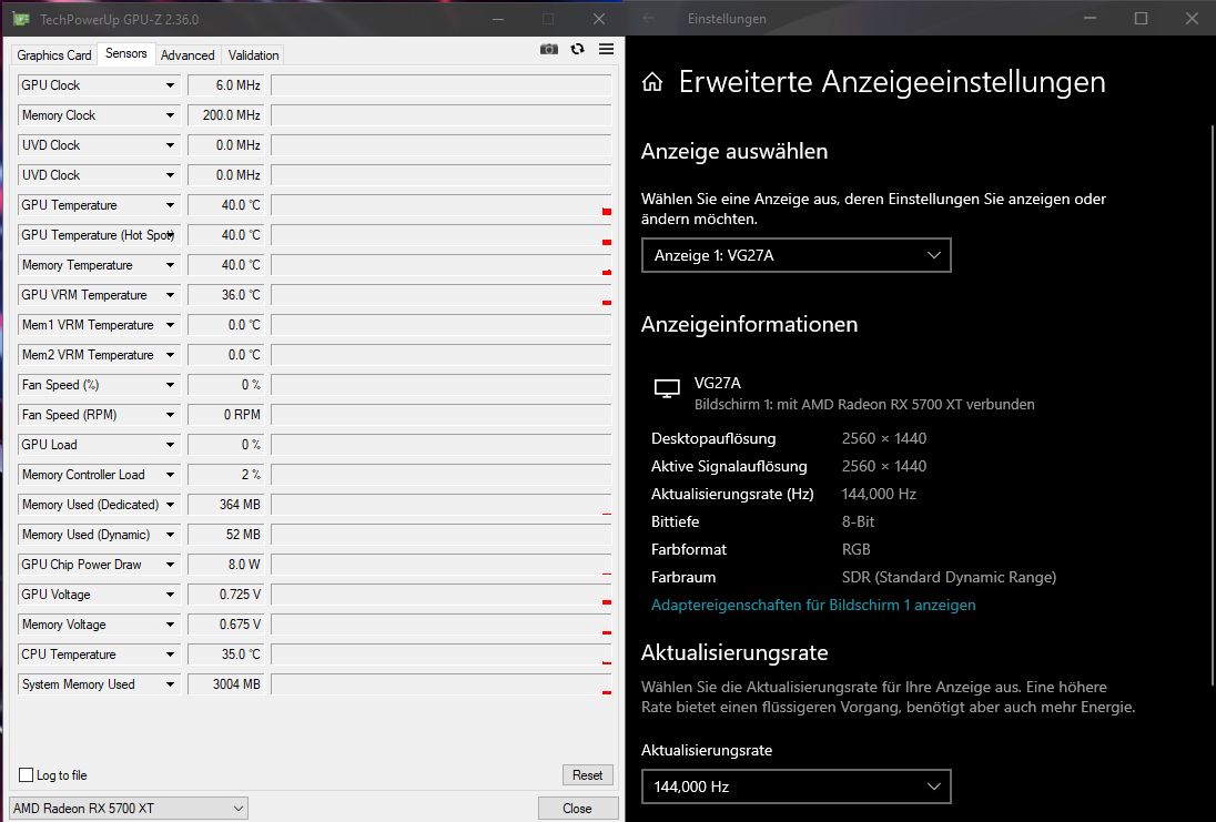 Im IDLE ist der Memory Clock laut GPU-Z bei 1478 MHz. Das Problem hierbei ist, dass die GPU Temperatur auf ca. 57-58 Grad steigt und dann die Lüfter kurz laut angehen (sollen normalerweise im IDLE ausgeschaltet bleiben) damit die Temperatur wieder sinkt, dies geschieht zirka alle 5-10 Minuten. Der Memory Clock regelt nicht alleine runter. Es nervt...