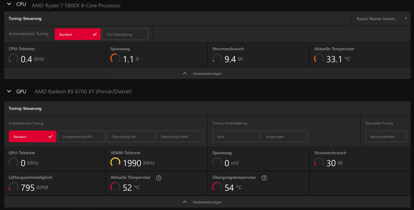 Beim surfen im Internet (Edge) ruckelt der Mauszeiger immer mal wieder und beim spielen (TheHunter: COTW) habe ich Ruckler zwischen 10 und 50 FPS bei 144HZ in 1080P auf Hoch- und Ultrasettings.