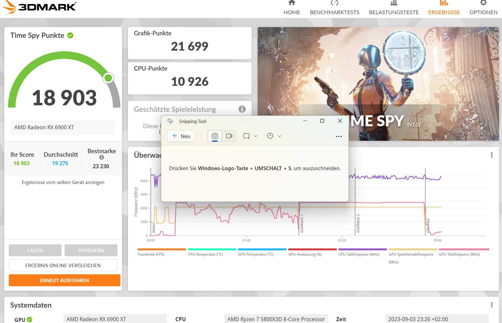 Ich habe soeben eine 3D Mark Time Spy Test durchgeführt und ein recht