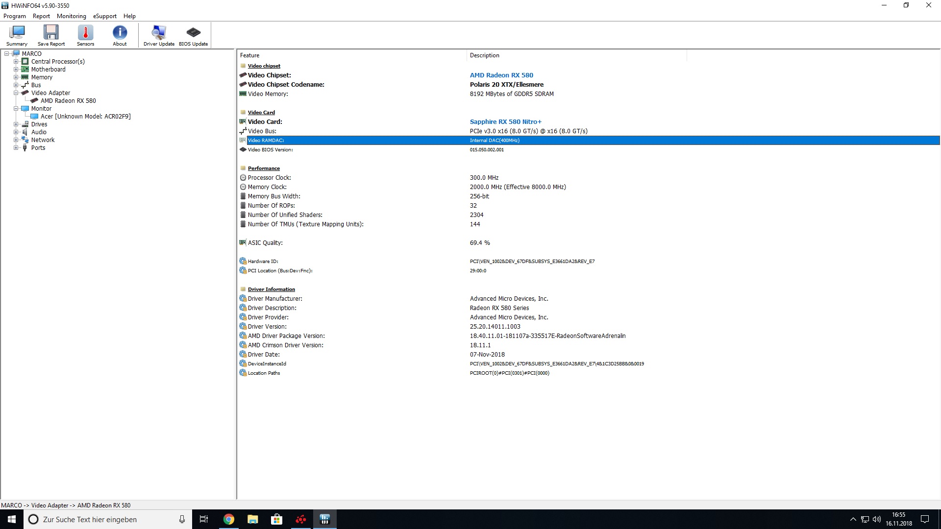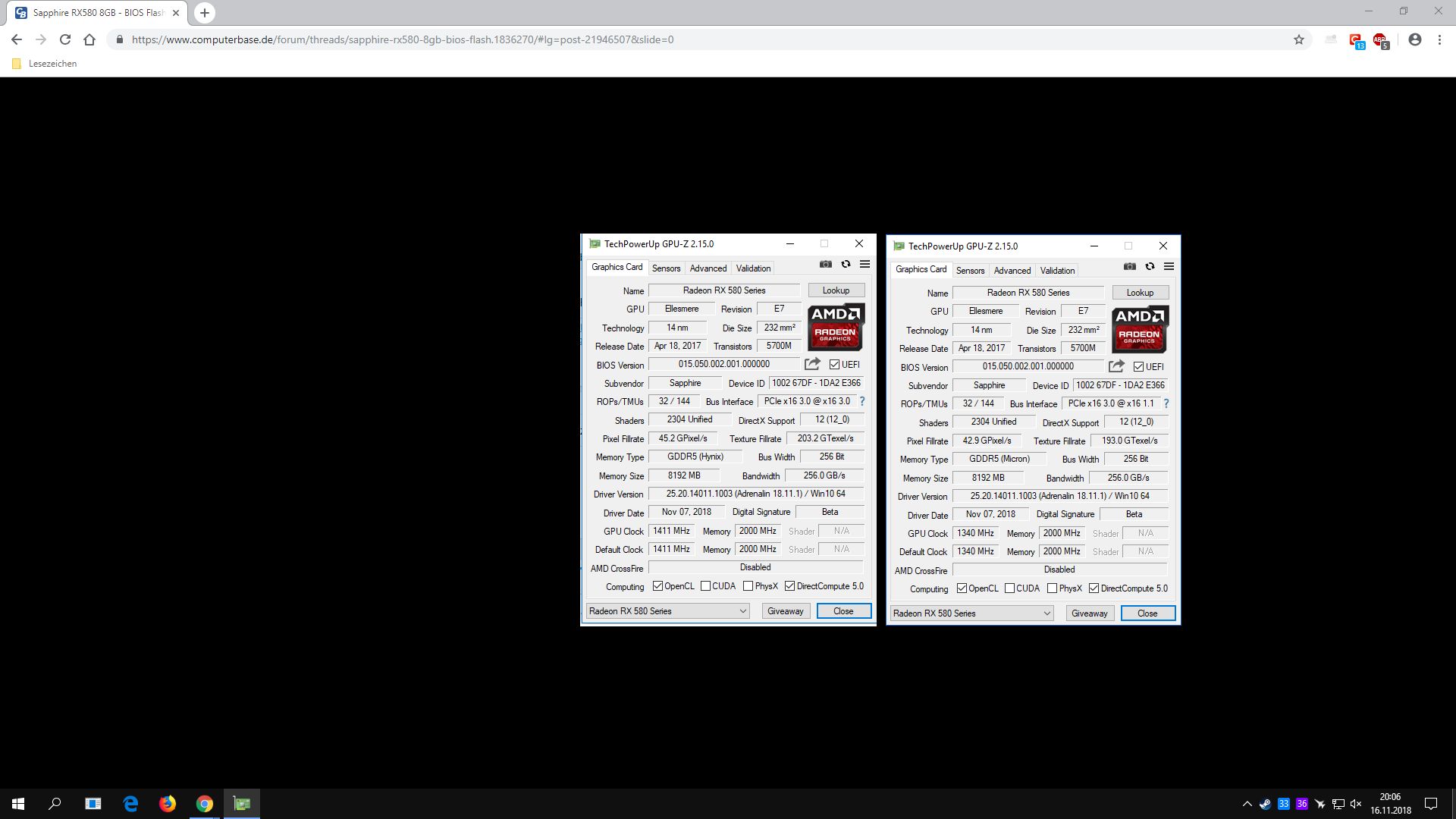 ich habe 2x Probleme mit meiner Grafikkarte es ist eine Sapphire Nitro+ RX580 als 8GB Variante, SKU: 11265‑01‑20G
