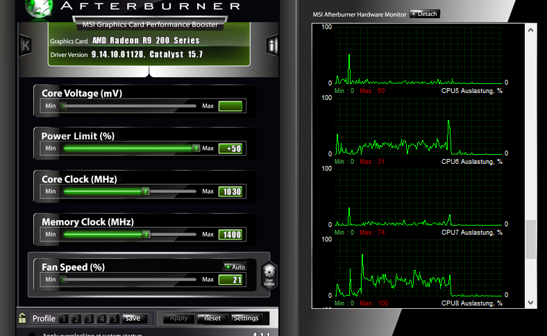 Auslastung der CPU wenn die Grafikkarte voll taktet:
