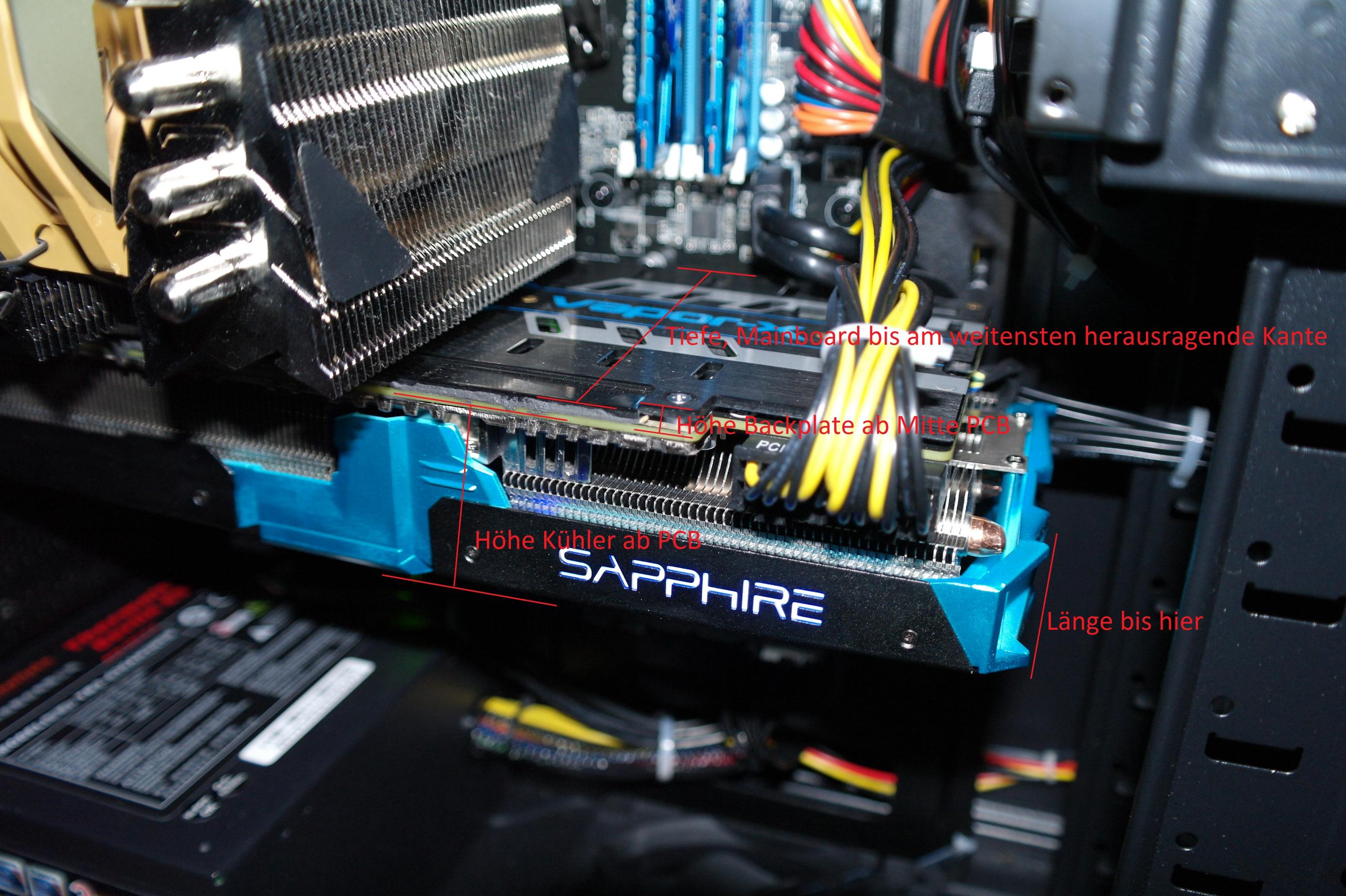 im Gehäuse drin hat er direkt unter der GPU nur 4cm Platz bis zum Gehäuseboden