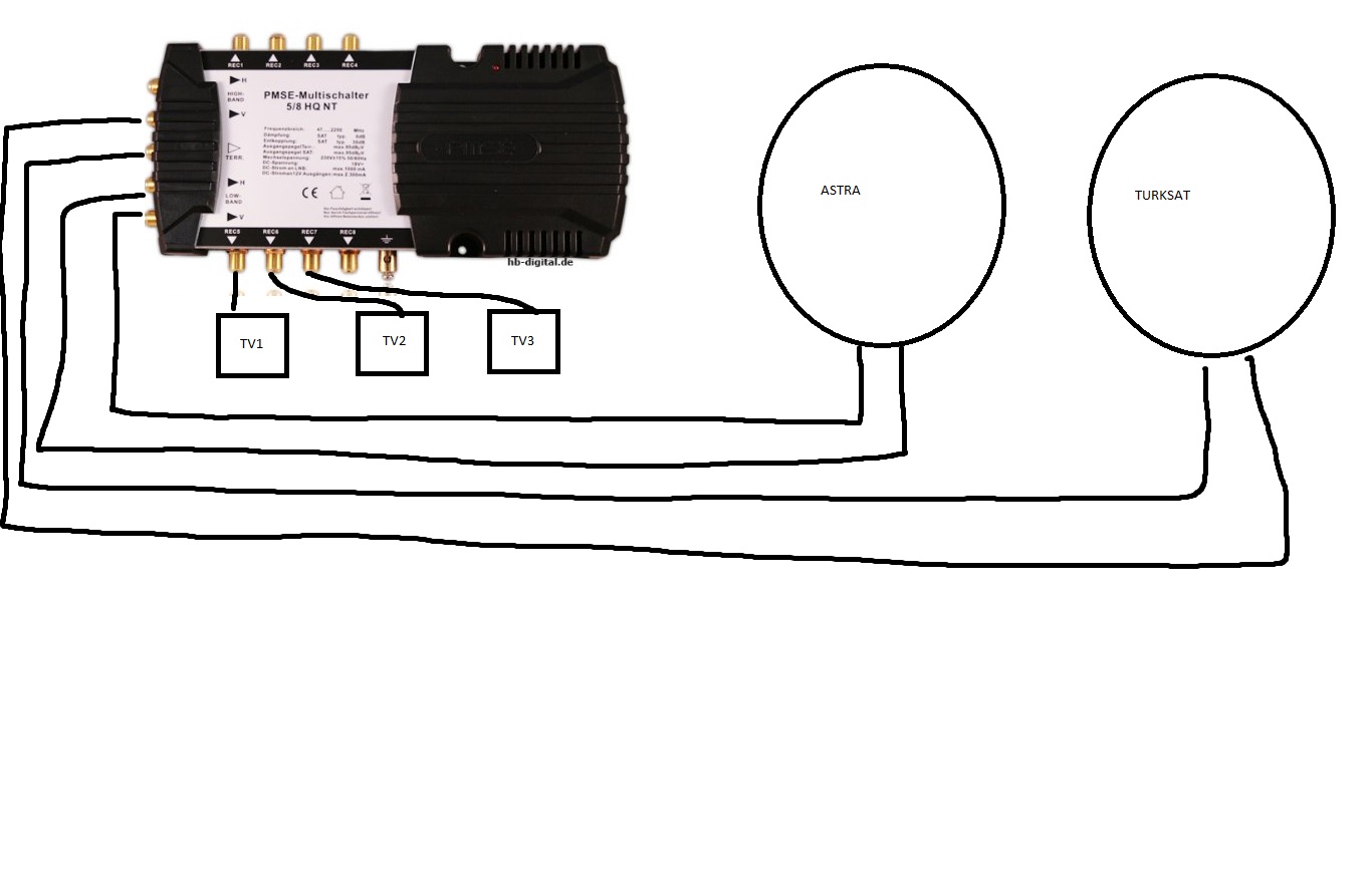 Unzwar geht es darum, das wir im Haus 3 TV Geräte haben, und 2 davon sollen Deutsche sowieso Türkische Sender empfangen.