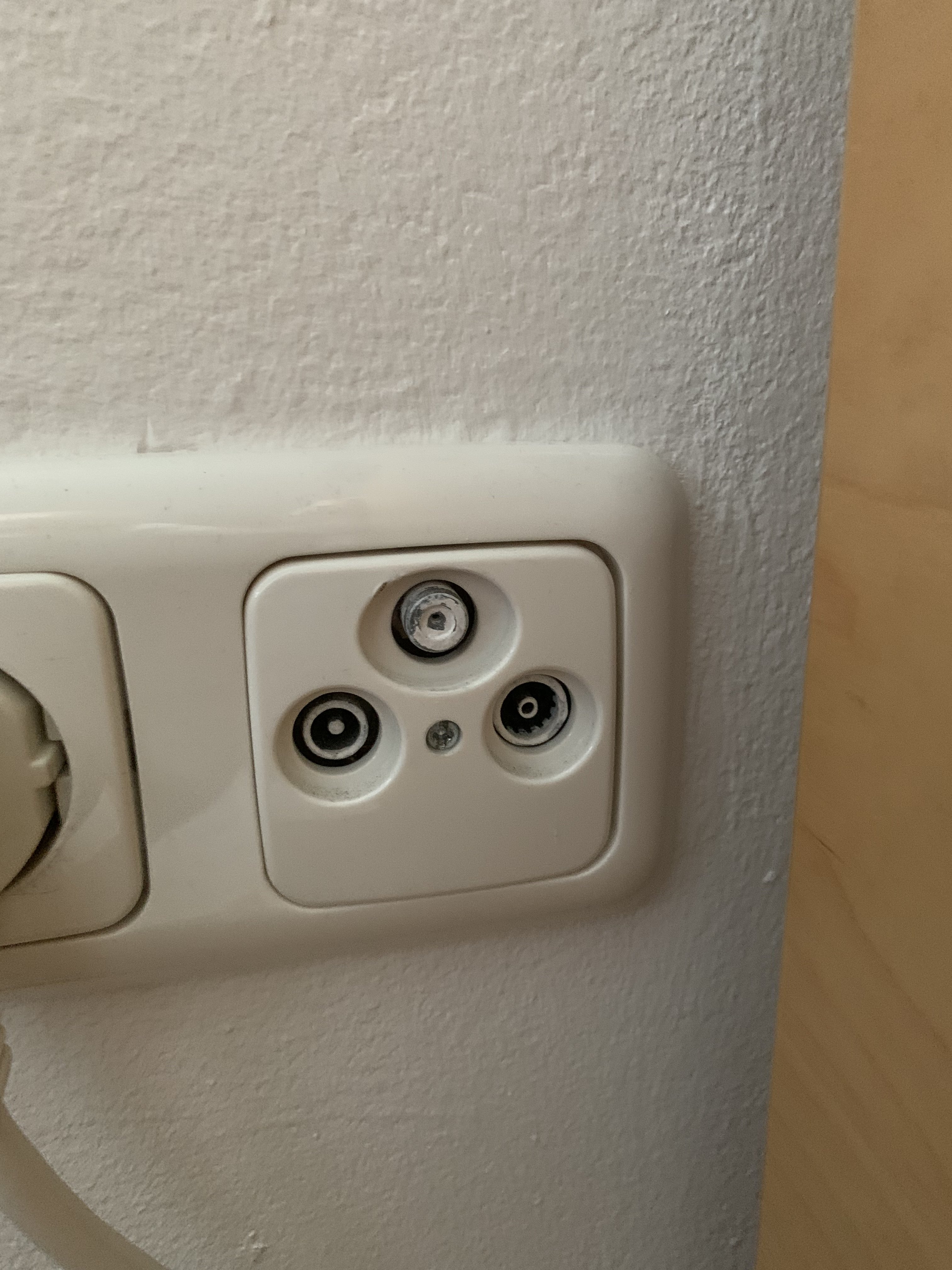 Ich bin gerade umgezogen und der Vermieter und die Hausverwaltung sind leider nicht sehr hilfreich. Es gibt wohl keinen Kabelanschluss im Haus sondern eine gemeinschafts SAT Anlage. In den Wohnungen sind nun eben diese gewöhnlichen Buchsen mit Antennenanschluss, Radio und das oben in der Mitte könnte SAT oder Kabel über Koaxial sein, richtig? Ich weiß nur nicht wie ich herausfinden kann mit was ich den TV nun anschließen soll. Problem ist, ich kann es nicht einfach mal ausprobieren weil die Anschlüsse so weit weg sind dass ich auf jeden Fall ein 10m Kabel erst bestellen muss.