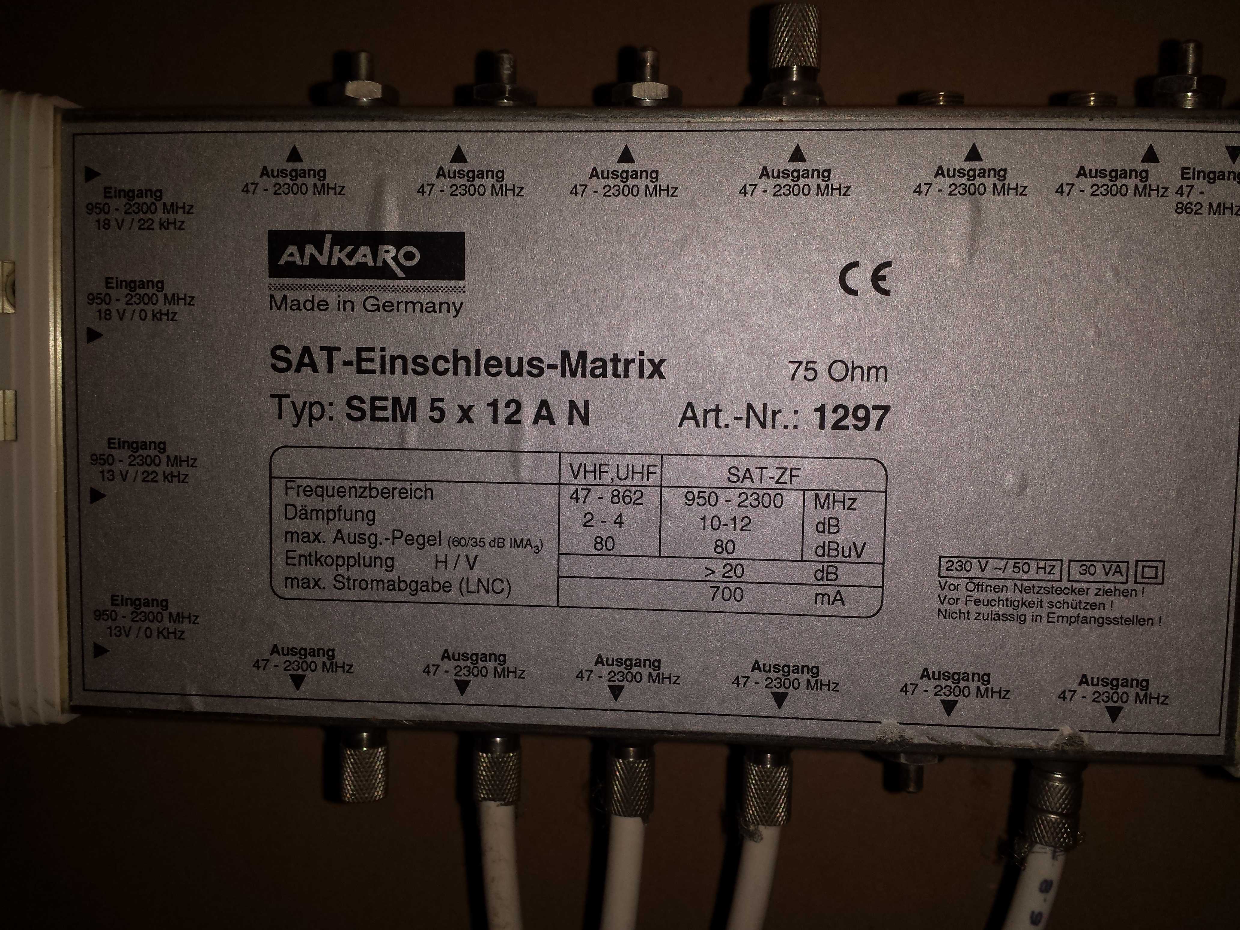im Einfamilienhaus ist von den Vorbesitzern ein Multischalter installiert sowie 5x Koaxialkabel in die Räume verlegt. Bisher wurde über DVB-T empfangen, da das nun wegfällt möchte ich auf DVB-S2 umstellen und benötige dafür eine Satellitenschüssel, LNB und eventuell einen Multischalter, sofern der alte nicht digitaltauglich ist.