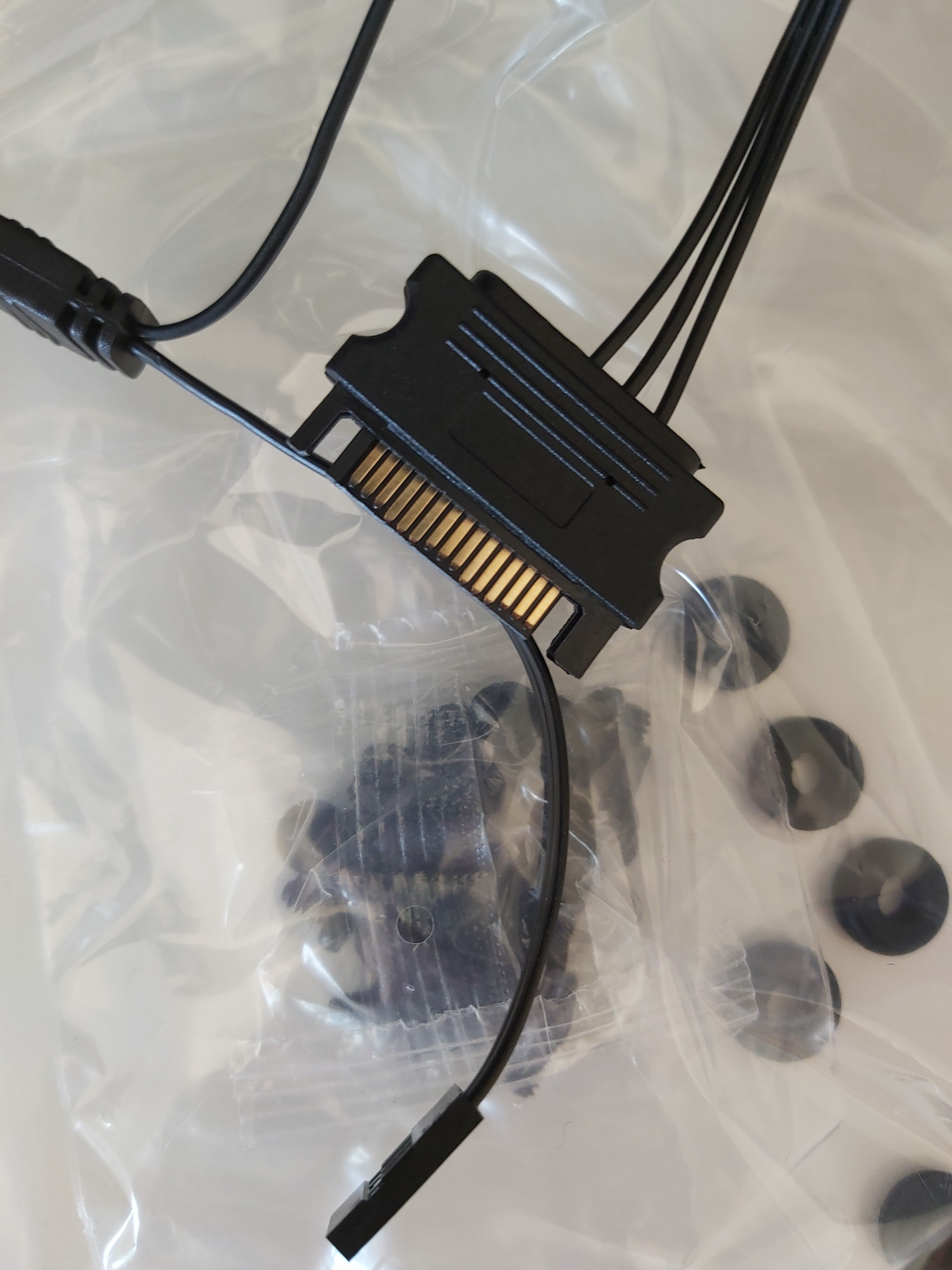 Bei meinem Sharkoon TG4 Gehäuse ist der selbe Anschluss vorhanden und ja, der gehört ans Netzteil, woanders passt der auch gar nicht dran. Übrigens sind ein kleines Handbuch und ein Zettel im Lieferumfang enthalten worauf beschrieben- und skizziert ist wie das Teil angeschlossen wird, da hätte man ja mal drauf schauen können