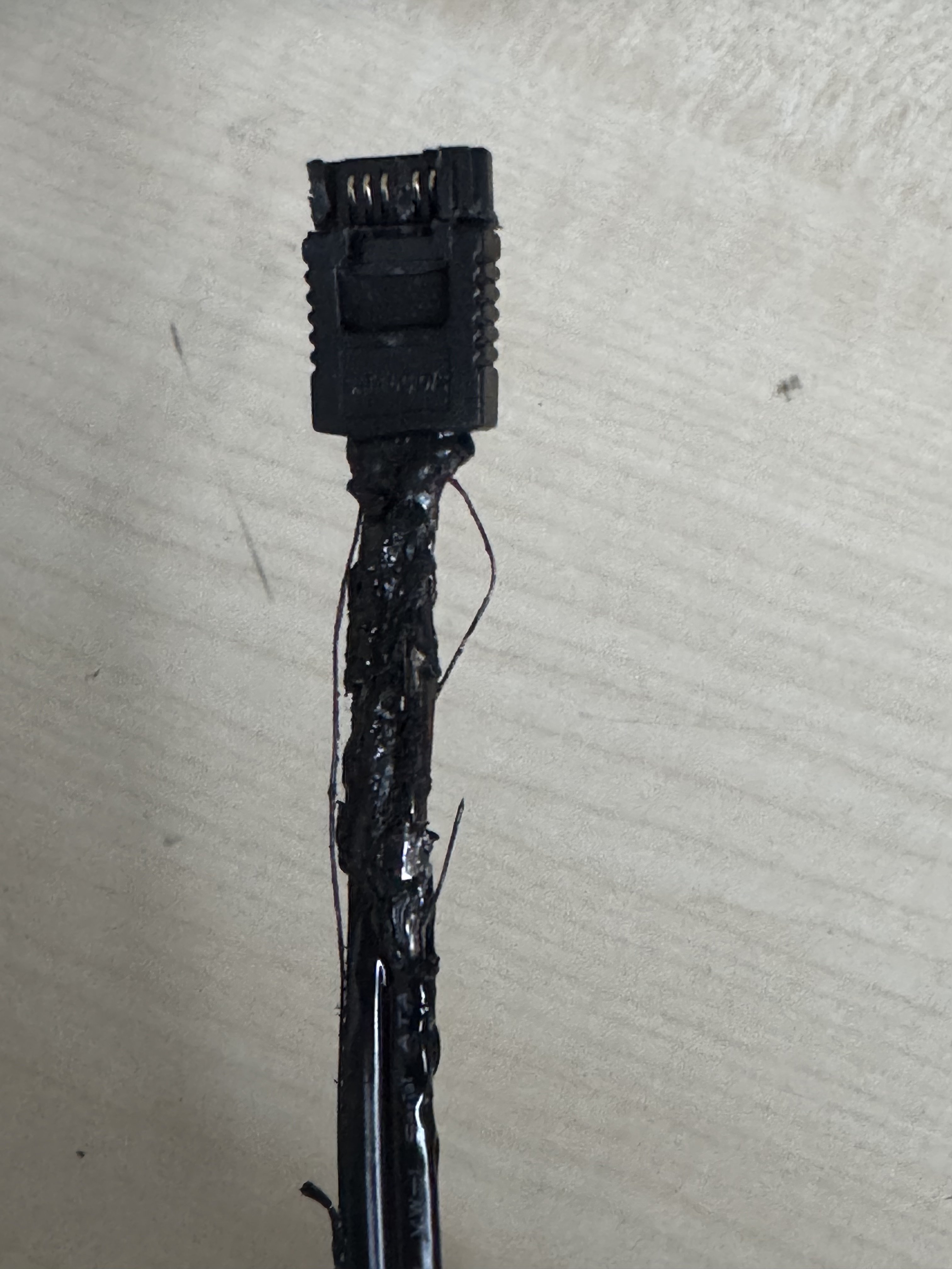 Hallo, mir ist ein SATA-Datenkabel angeschmort, jetzt möchte ich mal herausfinden woran das gelegen haben könne.